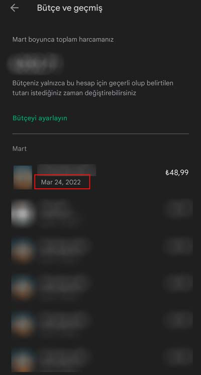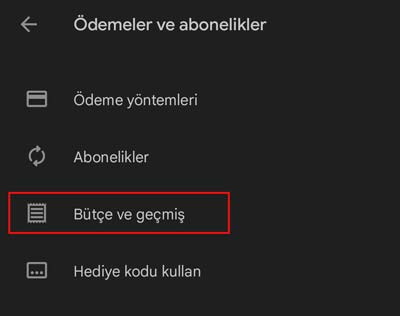 - Buradan Bütçe ve geçmiş bölümüne girin.