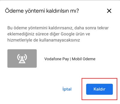 - Burada karşınıza yine ödeme yöntemleri çıkacak. Altındaki Kaldır yazısına dokunun.