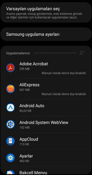 • Burada karşınıza uygulamaların listesi çıkacaktır. Eğer daha düşük veya yüksek bir Android sürümüne sahipseniz, daha farklı bir ekranla karşılaşabilirsiniz. Uygulama listesini bulun.