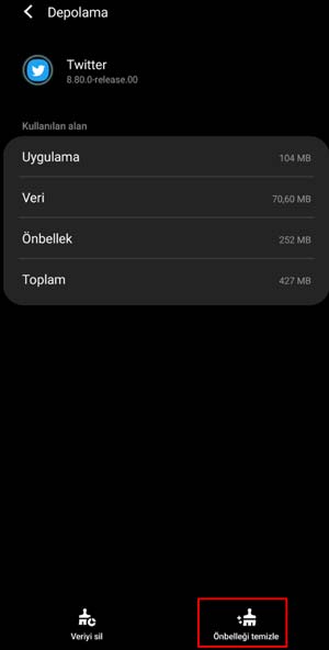 • Aşağıdaki Önbelleği temizle yazısına dokunun.